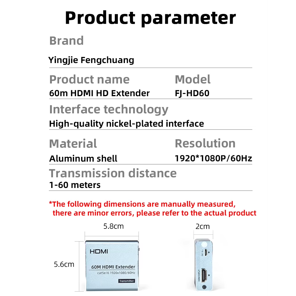 Extensor HDMI hasta 60 Metros UTP RJ45 Full HD 1080 Marca: FjgearModelo: FJ-HD60Material: AluminioEntrada y salida de cable HDMI: 10... Leer más...