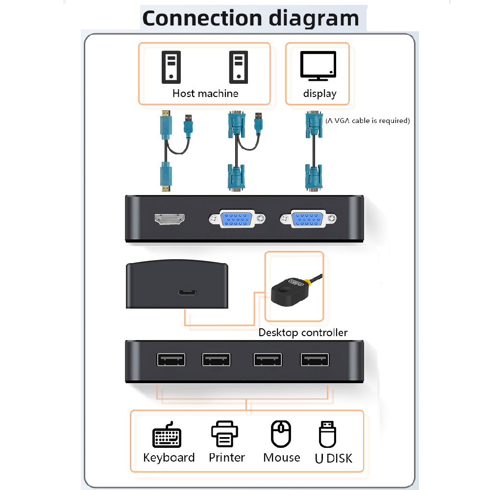 Switch 2 puerto VGA, 1 HDMI KVM, HD 1920*1080p Para 2PC