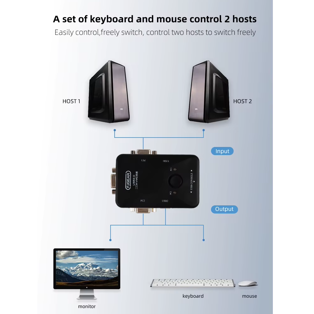 Switch VGA KVM 2PC, 1 monitor, Teclado y Mouse, 2 Cab VGA Marca: FJGEARModelo: FJ-2UK-TMaterial: ecológico ABSCables: 2 VGAResolución :... Leer más...